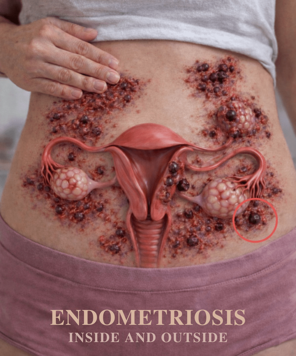 Endometriosis occurs when tissue similar to the lining inside the uterus (the endometrium) grows outside of it—on ovaries, fallopian tubes, pelvic lining, or even farther afield. Every month, this tissue responds to hormonal changes just like the uterine lining: it thickens, breaks down, and bleeds.