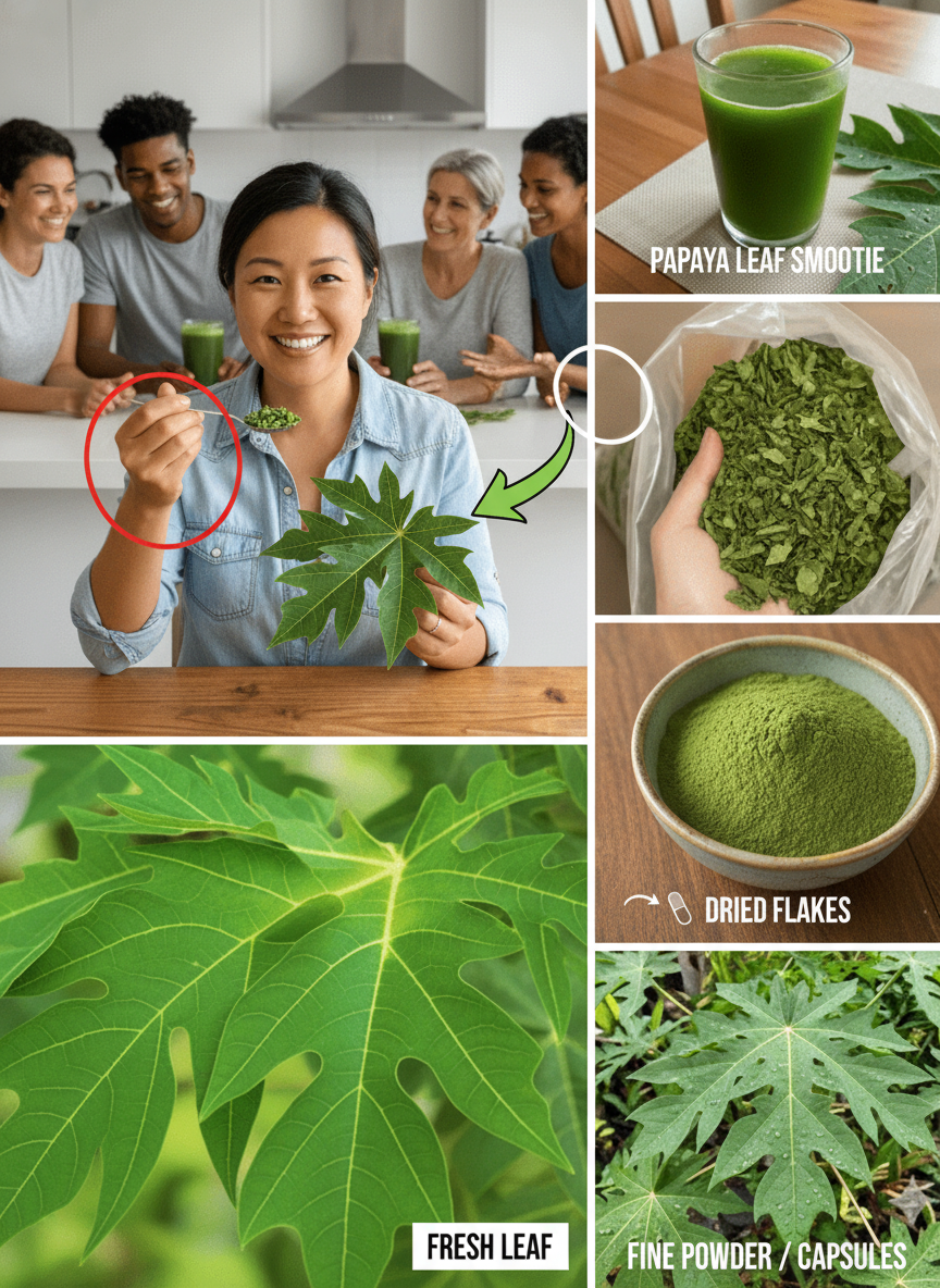 - Papaya Leaf Juice: Fresh leaves are blended with water, often filtered afterward to lessen their natural bitterness, resulting in a potent liquid tonic.
