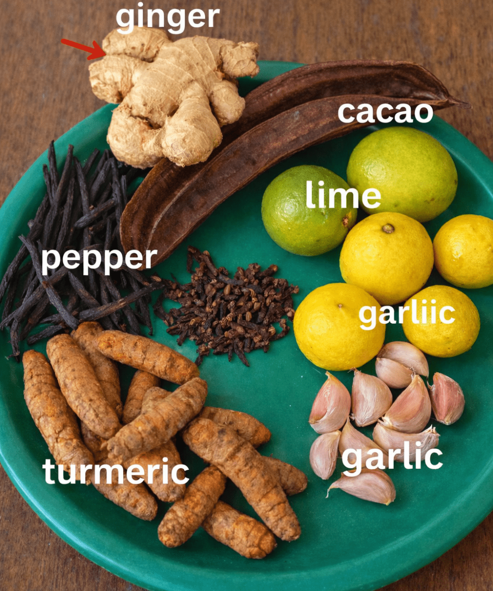 The Everywoman Combo is a homemade wellness blend rooted in traditional natural ingredients, particularly from West African herbal practices. It’s a thoughtful combination of ginger, lemon or lime, garlic, cinnamon, bagaruwa seeds, turmeric, Aidan fruit, iyere or uziza seeds, eru or uda seeds, and cloves.