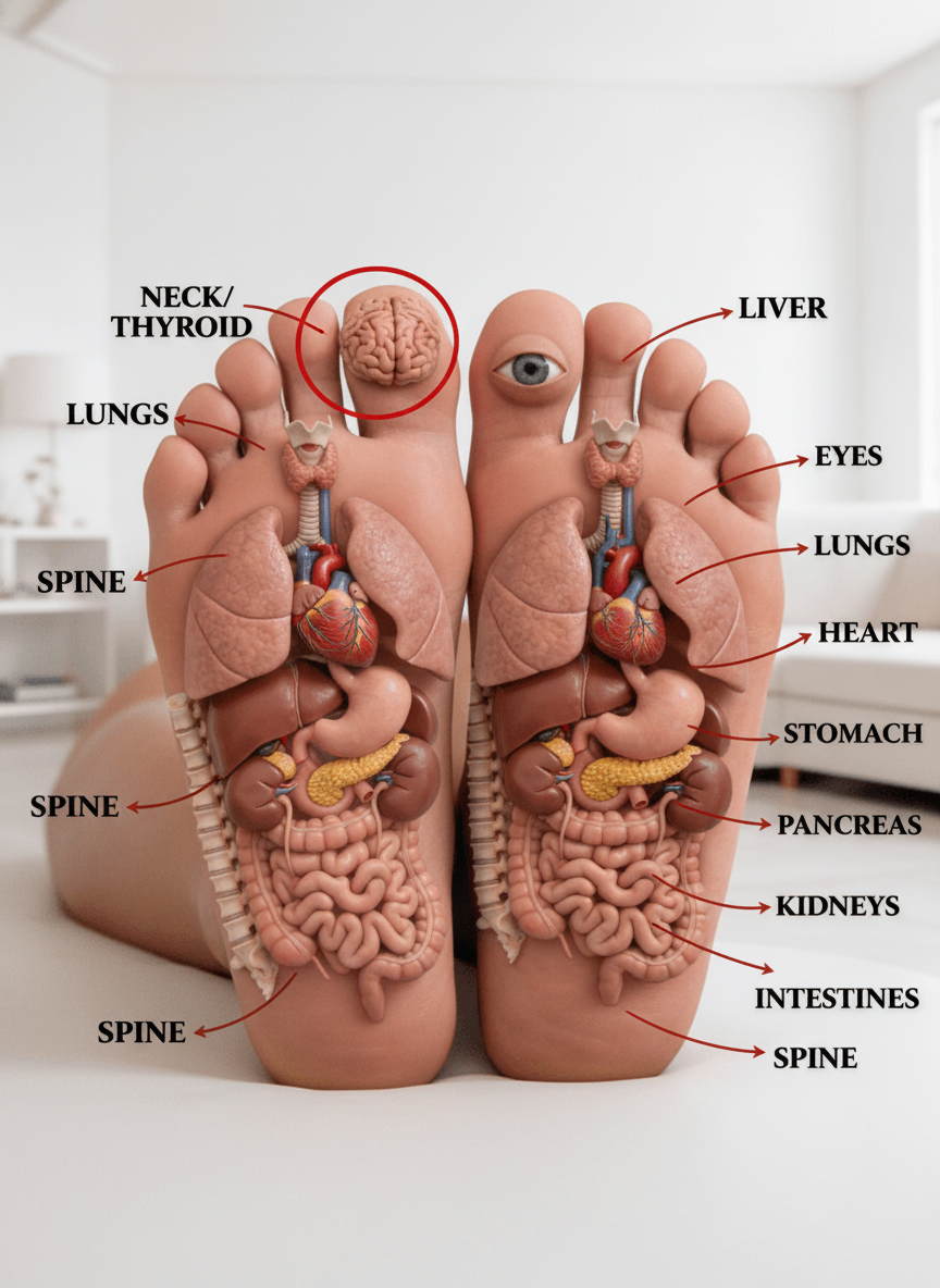 | Toes | Head, Brain, Eyes, Ears, Sinuses | Relief from headaches, improved mental clarity, sinus comfort |