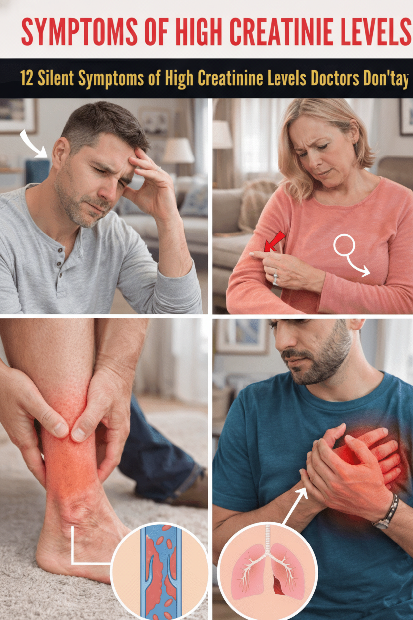 High creatinine levels rarely manifest with obvious, loud symptoms in their early stages. These 12 signs represent some of the most consistent early-to-mid-stage warnings reported by patients who are later diagnosed with chronic kidney disease (CKD) or acute kidney injury (AKI). When multiple signs persist for more than 2–4 weeks—especially a combination of foamy urine, swelling, and persistent fatigue—they should never be dismissed as “just aging.”